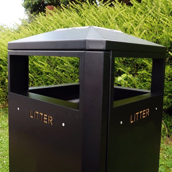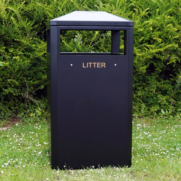 The MLB/112 Litter Bin is constructed from galvanised steel and offers a premier metallic option for litter collection, combining a steel cut corner design with our classic laser cut LITTER text and stainless steel petal ashtray.