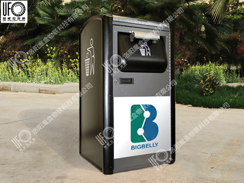 垃圾箱通過不同投放口進(jìn)行垃圾分類引導(dǎo),內(nèi)部設(shè)有壓縮系統(tǒng),用箱頂?shù)奶柲茈姵匕骞╇?可自動對投入的垃圾進(jìn)行壓縮。