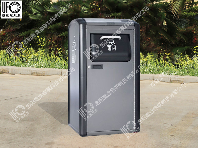 垃圾箱通過不同投放口進(jìn)行垃圾分類引導(dǎo),內(nèi)部設(shè)有壓縮系統(tǒng),用箱頂?shù)奶柲茈姵匕骞╇?可自動對投入的垃圾進(jìn)行壓縮。